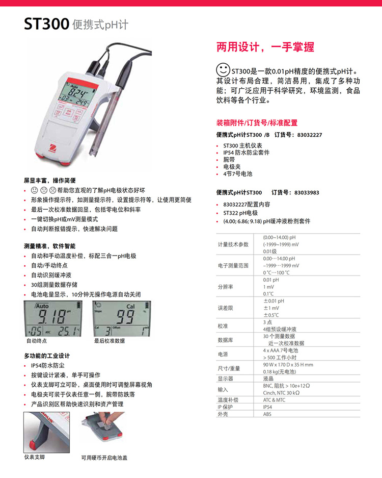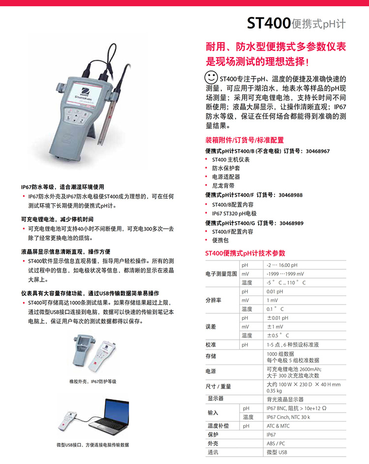 奧豪斯便攜式pH計ST300/ST400防水防塵酸度計檢測儀數顯ph測定儀