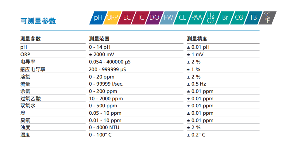 可定制雙參數 PH+ORP;雙參數PH+余氯;三參數PH+ORP+余氯;四參數PH+ORP+余氯+濁度;五參數PH+ORP+余氯+濁度+溫度