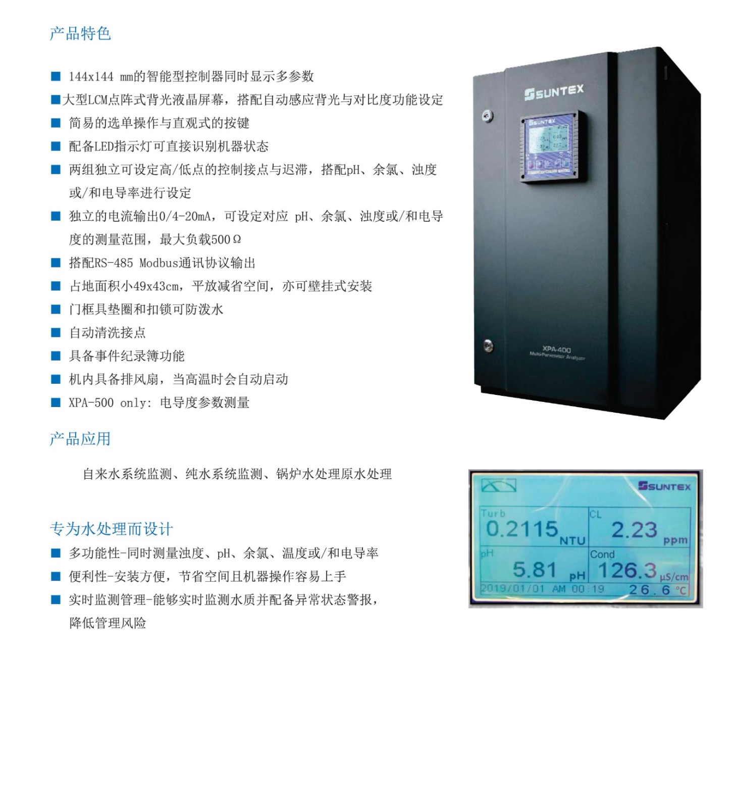 SUNTEX水質四參數/五參數分析儀 XPA-400 XPA-500